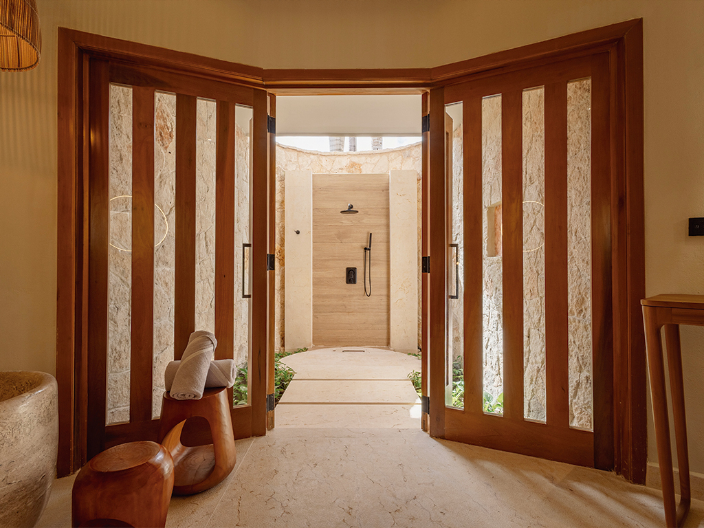 - Bathroom with outdoor shower and bathtub